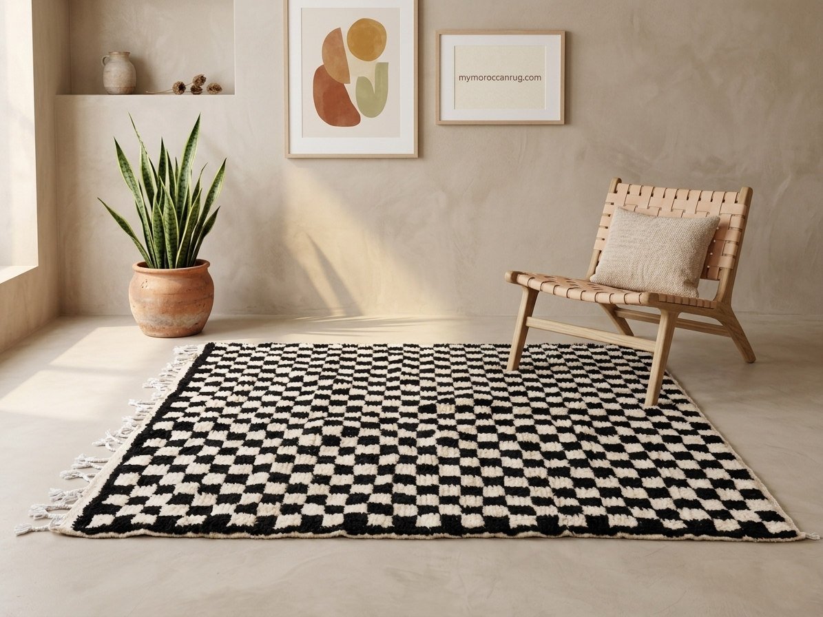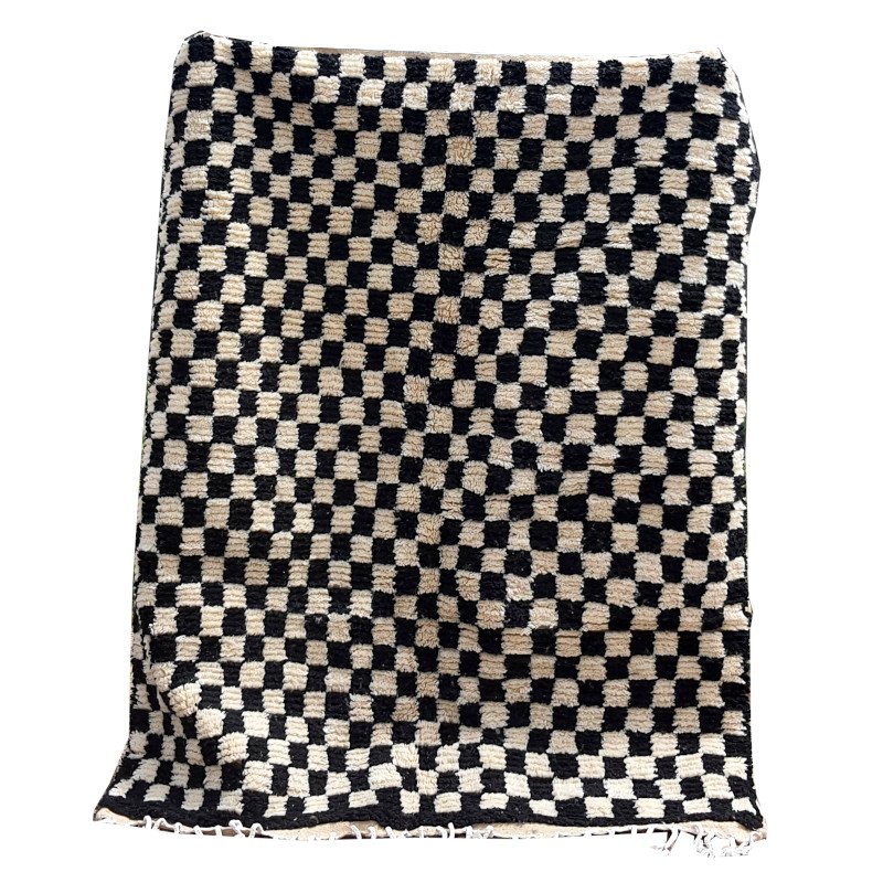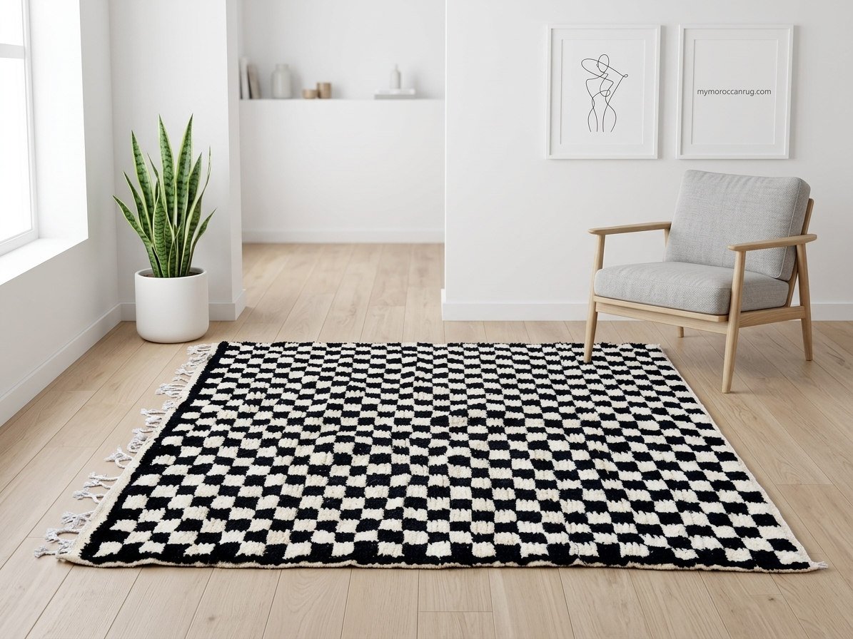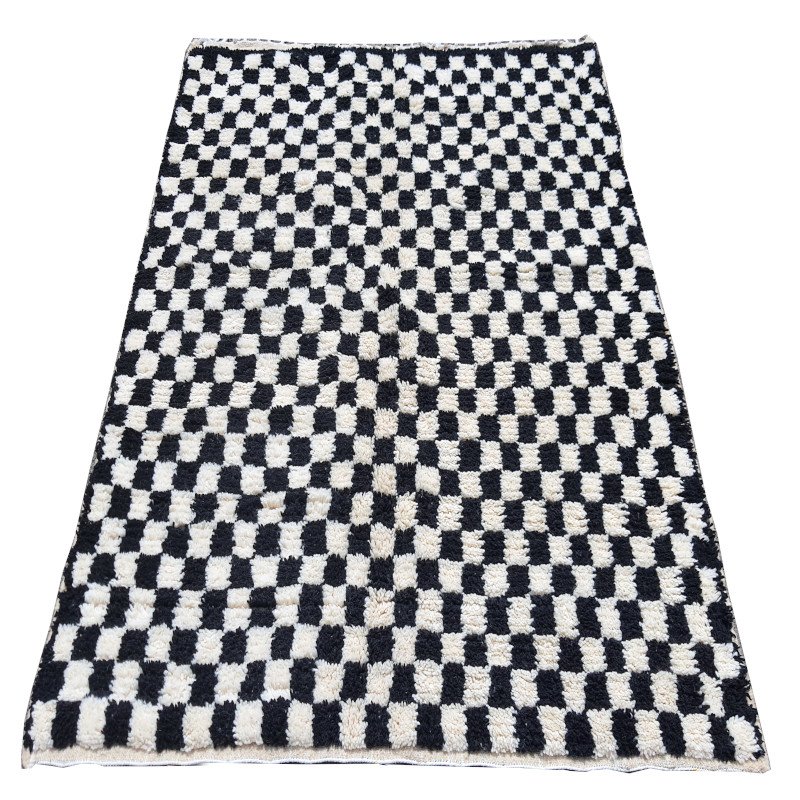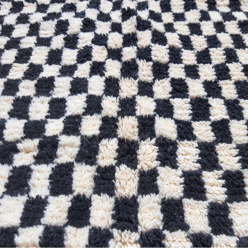 Bring bold contrast and timeless style into your home with this handmade Moroccan checkerboard rug. Featuring a striking black and white geometric pattern, this wool Berber carpet blends traditional craftsmanship with modern minimalist design.